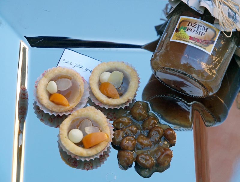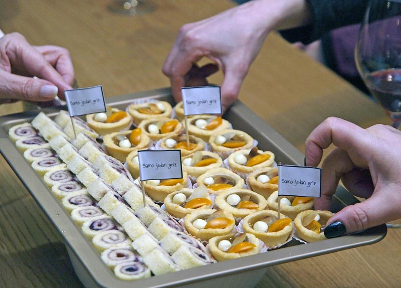 Kako je nedjeljno poslijepodne nezamislivo bez deserta ono što je posebno oduševilo sve okupljene bili su kolači s marmeladom Plavac mali i Pošip koje proizvodi Manuela Ferić (Slavonska Vila) s Pelješca, a koje je osmislio food bloger Darko Debić (Samo jedan griz). U maniri malih ukusnih zalogaja Darko je tako napravio mini roladu s Plavcem malim i fine osvježavajuće košarice s Pošipom.